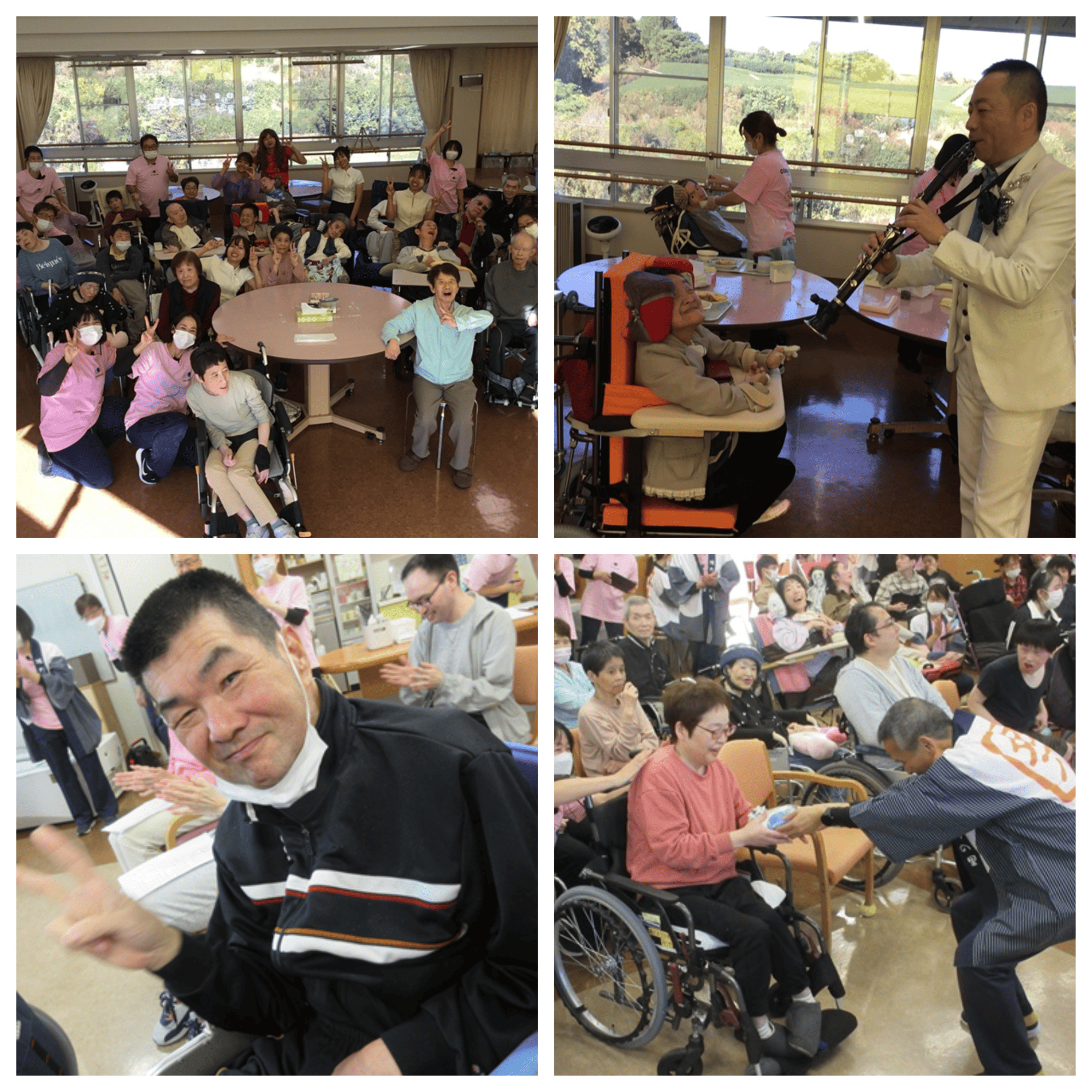 陽だまり保育園の園児によるオープニングアクト、ミャンマーの技能実習生による演舞、コジーアッシュ氏によるクラリネット演奏、職員によるギター演奏、抽選会、職員によるFM八女など色々な催し物を施設全体で楽しみました(^^)/